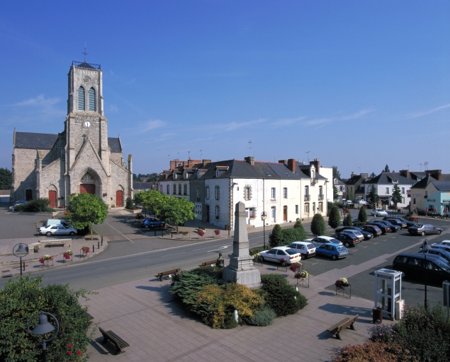 L'église dominant le centre du bourg : vue de situation sudImmatriculation