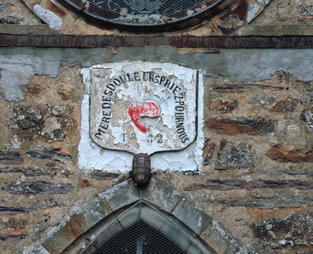Façade sud, pierre de calcaire portant date et dédicace : détailImmatriculation