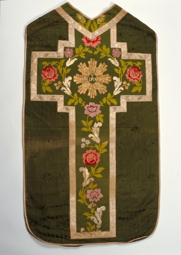 Ornement vert 3 : chasuble, étole, manipule, voile de calice,
