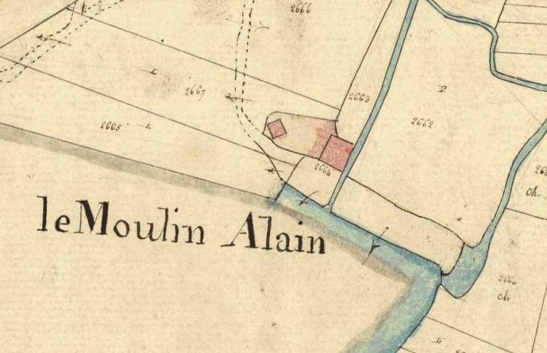 Le moulin et ses dépendances sur le cadastre de 1831Immatriculation