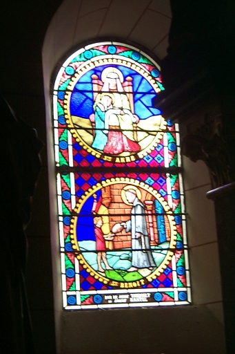 Ensemble des verrières à personnages des baies 2, 4, 6 : saint Pierre ; saint Samson ; sainte Anne ; saint Benoit ; saint Isidore ; sainte Philomène,