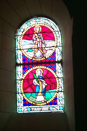 Ensemble des verrières à personnages des baies 2, 4, 6 : saint Pierre ; saint Samson ; sainte Anne ; saint Benoit ; saint Isidore ; sainte Philomène,
