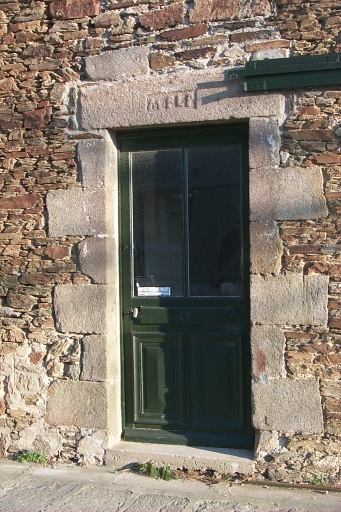 Détail : entrée centrale nord, linteau portant inscription 'MPLR'Immatriculation