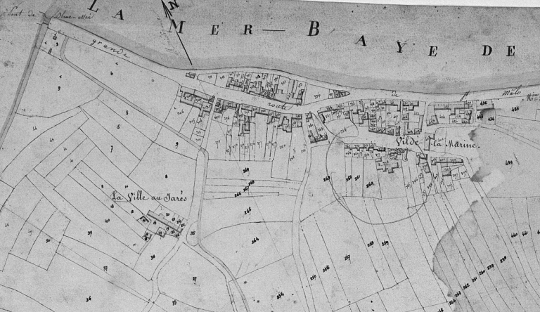 Situation sur le cadastre de 1828 : à l'extrémité ouest de l'îlot en bordure de merImmatriculation