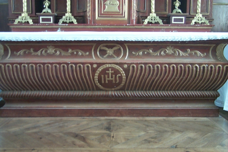 Ensemble du maître-autel : autel, gradin, tabernacle, exposition, retable, degrés,