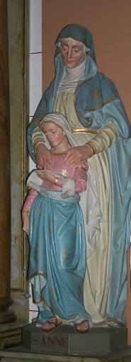 Ensemble de 2 statues en pendant : Education de la Vierge, saint Joseph et l'Enfant,