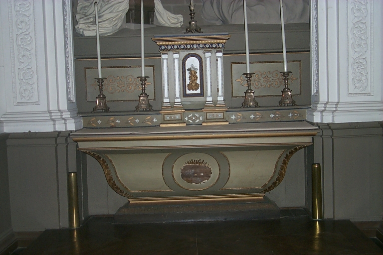 Ensemble de l'autel secondaire nord : autel, tabernacle, gradin d'autel, 2 degrés d'autel,