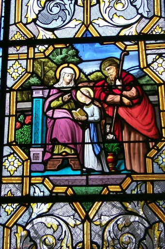 Verrière à personnages de la baie 4 : Education de la Vierge, avec saint Joachim,