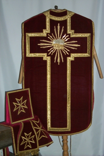 Ornement rouge 2 : chasuble, voile de calice, étole,