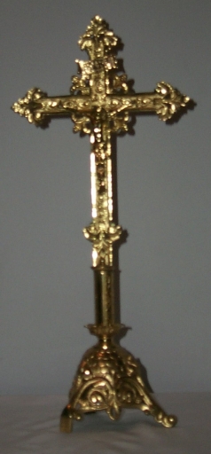 Garniture d'autel : croix d'autel, 4 chandeliers d'autel,
