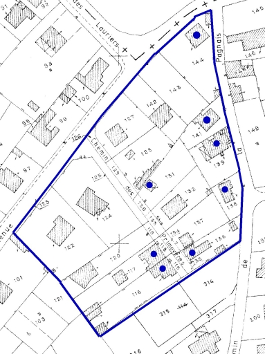 Délimitation sur le cadastre de 1988 ; les points représentent correspondant au lotissementImmatriculation