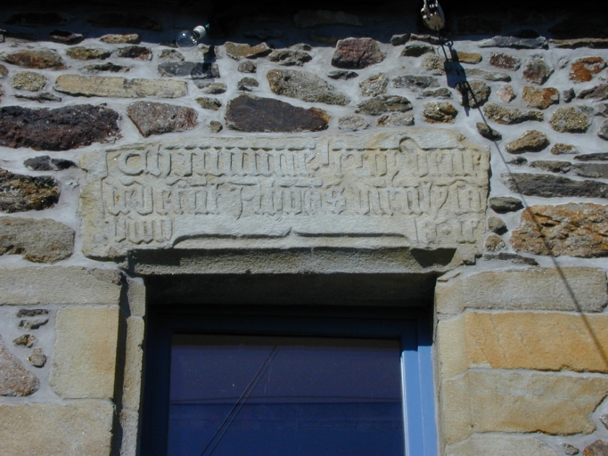 Linteau d'une fenêtre au 1er étage : inscription en lettres gothiquesImmatriculation