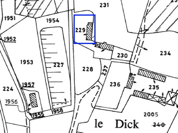 Situation sur le plan cadastral [le sud à droite]Immatriculation