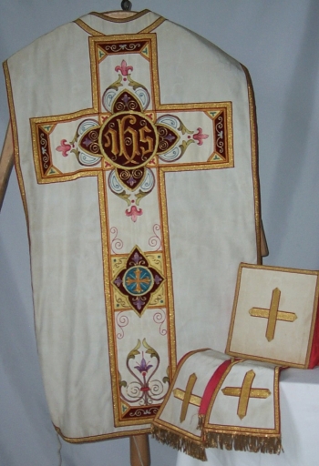 Ornement blanc 2 : chasuble, étole, manipule, bourse du corporal,
