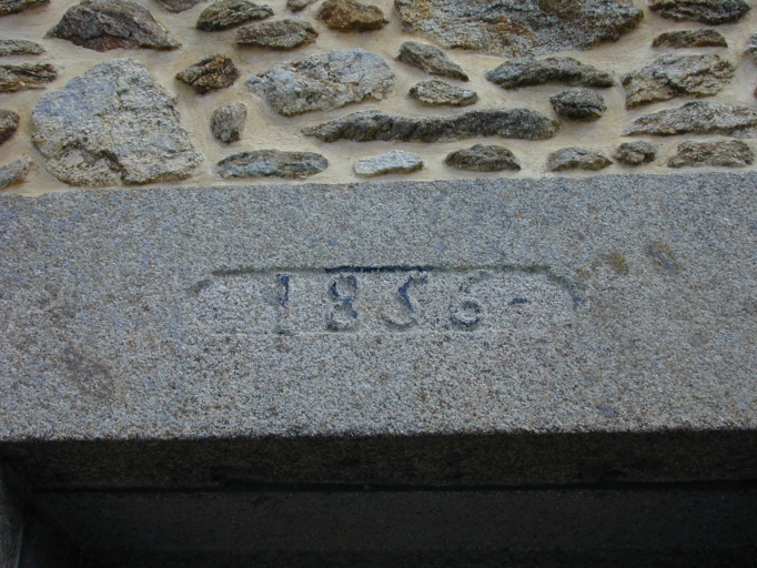 Linteau de la porte d'entrée du logis portant la date 1856 : détailImmatriculation