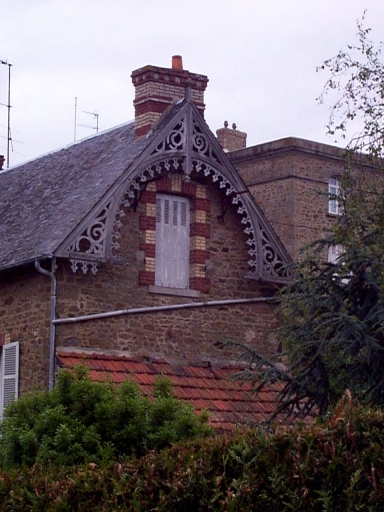 Détail ; lambrequins de bois découpé sur le pignon estImmatriculation