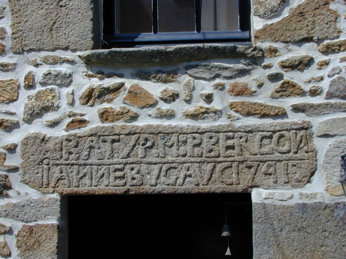 Linteau de la porte gravé d'une inscription : détailImmatriculation