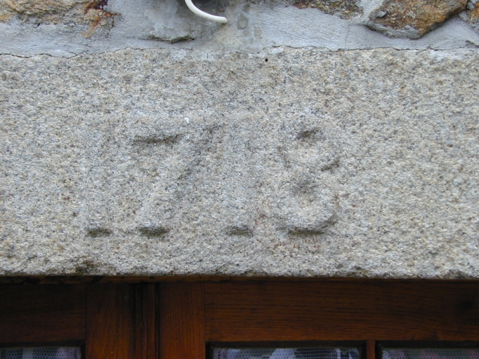 Porte d'entrée, date en relief sculptée sur le linteau : détailImmatriculation