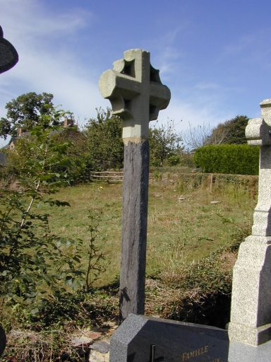 La croix de cimetière ; le fût est en schiste pourpre, la croix est en grèsImmatriculation