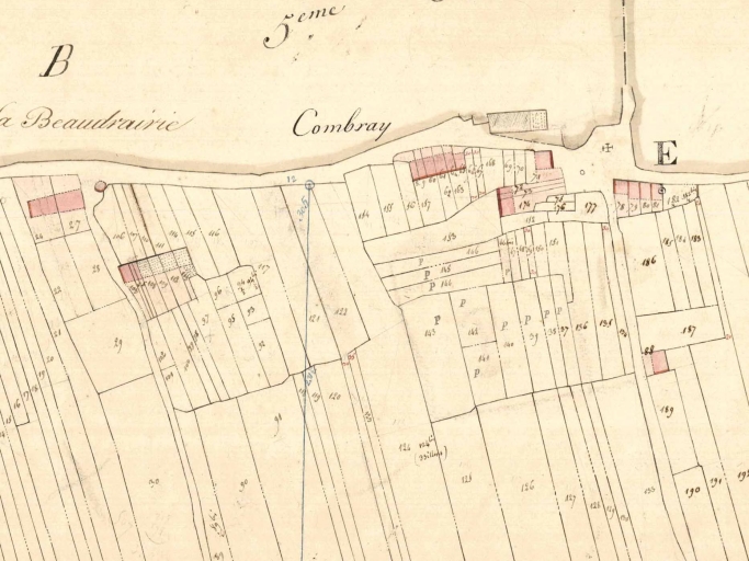 Vue de situation sur le cadastre de 1831 ; alignement en haut au centre de l'imageImmatriculation
