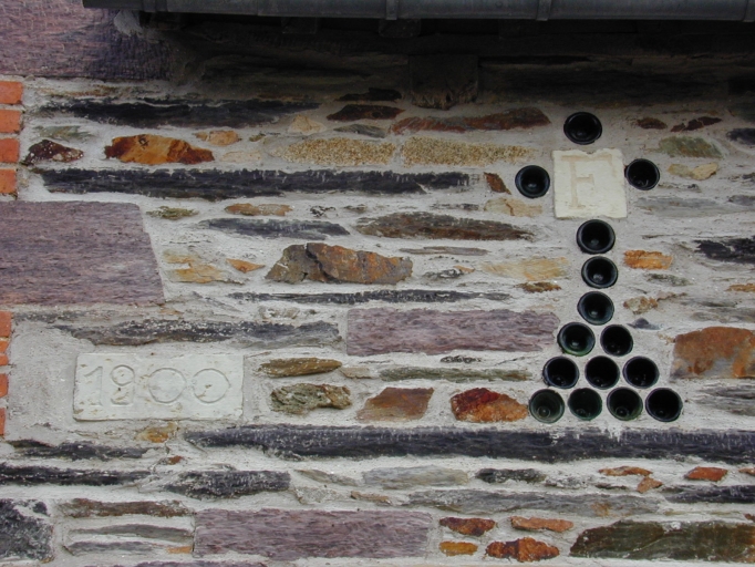 Détail : inscription et décor en 'cul-de-bouteille'Immatriculation