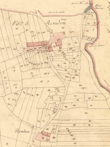 Vue de situation sur le cadastre de 1831 ; alignement en haut à gauche de l'imageImmatriculation