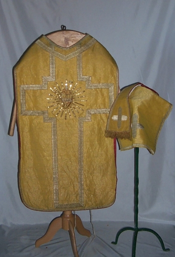 Ornement doré : chasuble, étole, voile du calice,