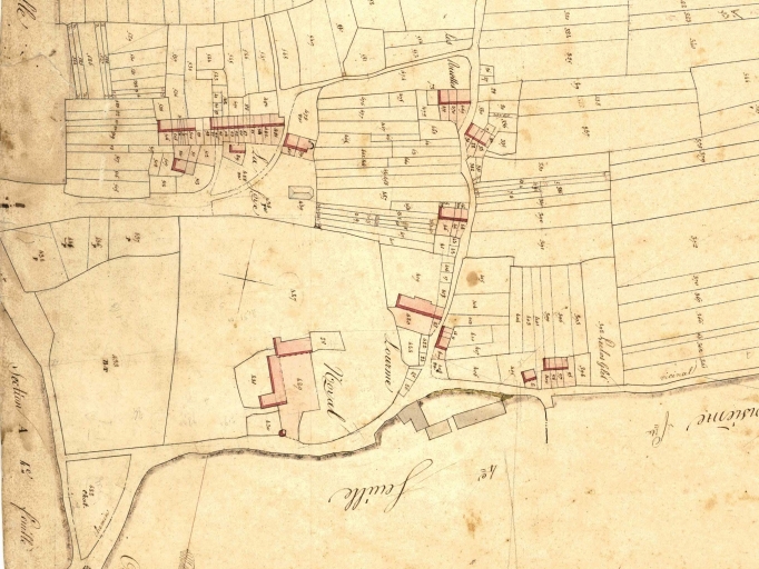 Vue de situation sur le cadastre de 1831 ; alignement en haut à gauche de l'imageImmatriculation