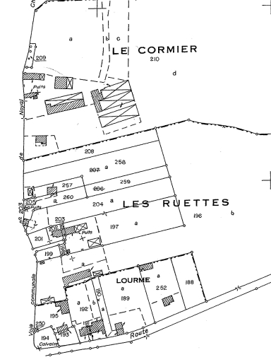 Extrait du cadastre de 1986 ; partie est de l'écartImmatriculation