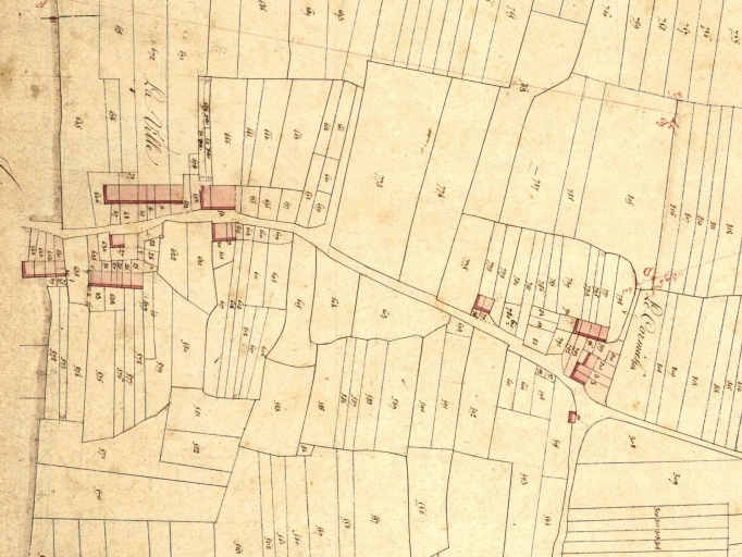 Vue de situation sur le cadastre de 1831 ; alignement en bas à gauche de l'imageImmatriculation