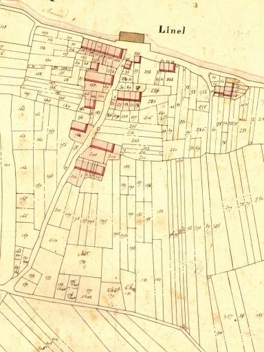 Vue de situation sur le cadastre de 1831 ; alignement en bas de l'imageImmatriculation