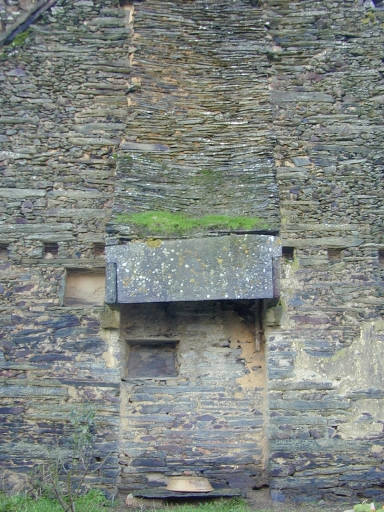 Cette cheminée est le vestige d'un logis du 18e siècle ; noter la constitution du parement de moellons de schiste appareillés en carreaux et boutissesImmatriculation