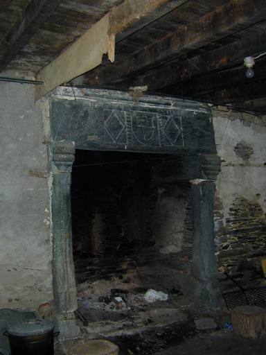 Détail : rez-de-chaussée, salle est, cheminée recomposée au 18e siècle à partir d'éléments 15e ou 16e siècleImmatriculation