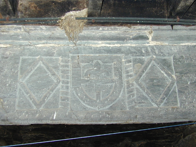 Détail : rez-de-chaussée, salle est, détail des décorations du linteau de cheminéeImmatriculation