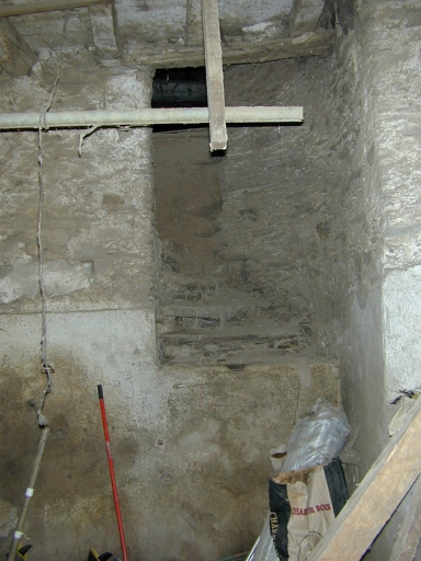 Détail : aile ouest des communs, salle centrale, vestiges d'un escalier circulaireImmatriculation
