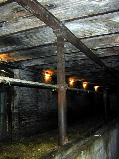 Détail : étable sud, vue du système de piliers métalliques et voutins de briquesImmatriculation