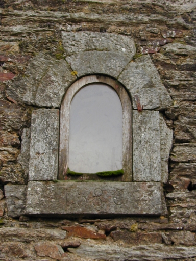 Détail : le logis, façade sud, niche à statue portant la date de construction : 1880Immatriculation