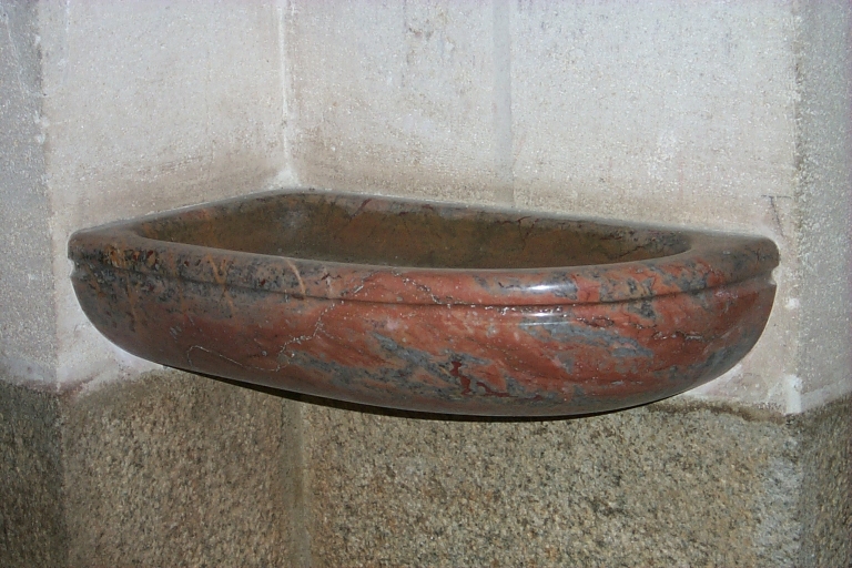 Vue d'un des bénitiers encadrant l'entrée de la nefImmatriculation