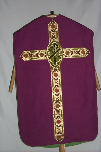 Ornement violet 1 : chasuble, voile du calice,