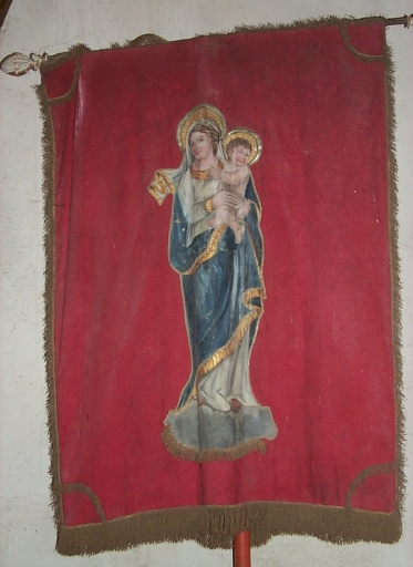 Bannière de procession de paroisse : Vierge à l'Enfant, Christ en croix,