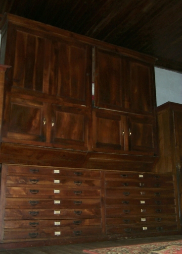 Ensemble de meubles de sacristie : chasublier, 3 armoires de sacristie, 5 placards de sacristie, confessionnal,