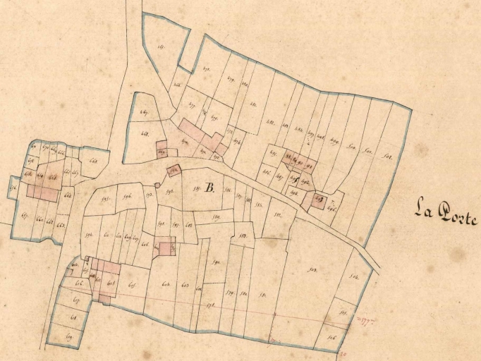 Vue de situation sur le casdastre de 1831 ; alignement en bas de l'imageImmatriculation