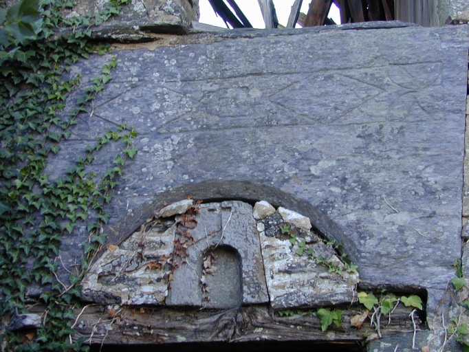 Détail : façade ouest, linteau de la porte nordImmatriculation