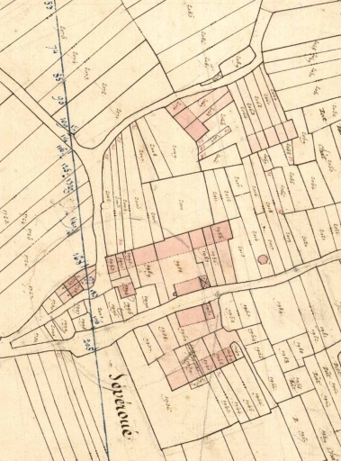 Vue de situation sur le cadastre de 1831 ; alignement au centre de l'imageImmatriculation