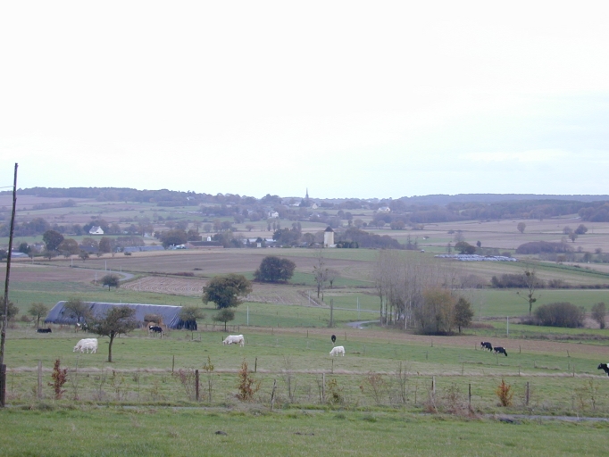 Vue générale depuis le nord-ouest de la commune : ancien moulin de la Forgerais et le bourg au fondImmatriculation