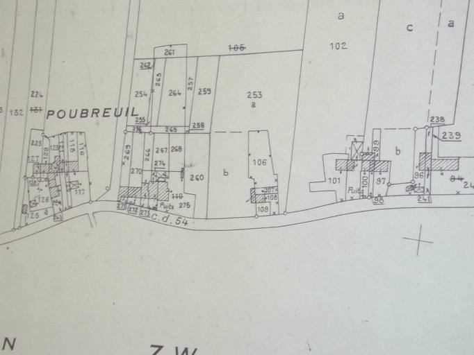 Extrait du cadastre de 1986 : partie nord-est de PoubreuilImmatriculation