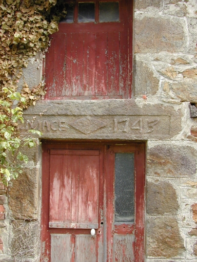 Linteau de porte avec l'incription 'I:MACE 1743' renseignant sur le commanditaire de ce logisImmatriculation