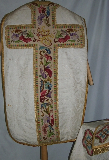 Ornement blanc 3 : chasuble, voile de calice, manipule,