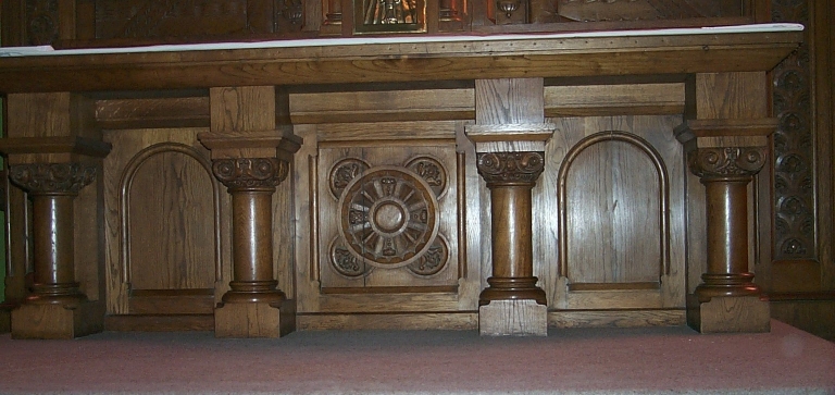 Ensemble du maître-autel 2 : autel, retable, tabernacle, exposition, gradin d'autel, 2 piédestaux, 3 degrés d'autel,