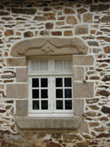 Détail : fenêtre de l'ancien logis, linteau à têtes d'animaux inverséesImmatriculation